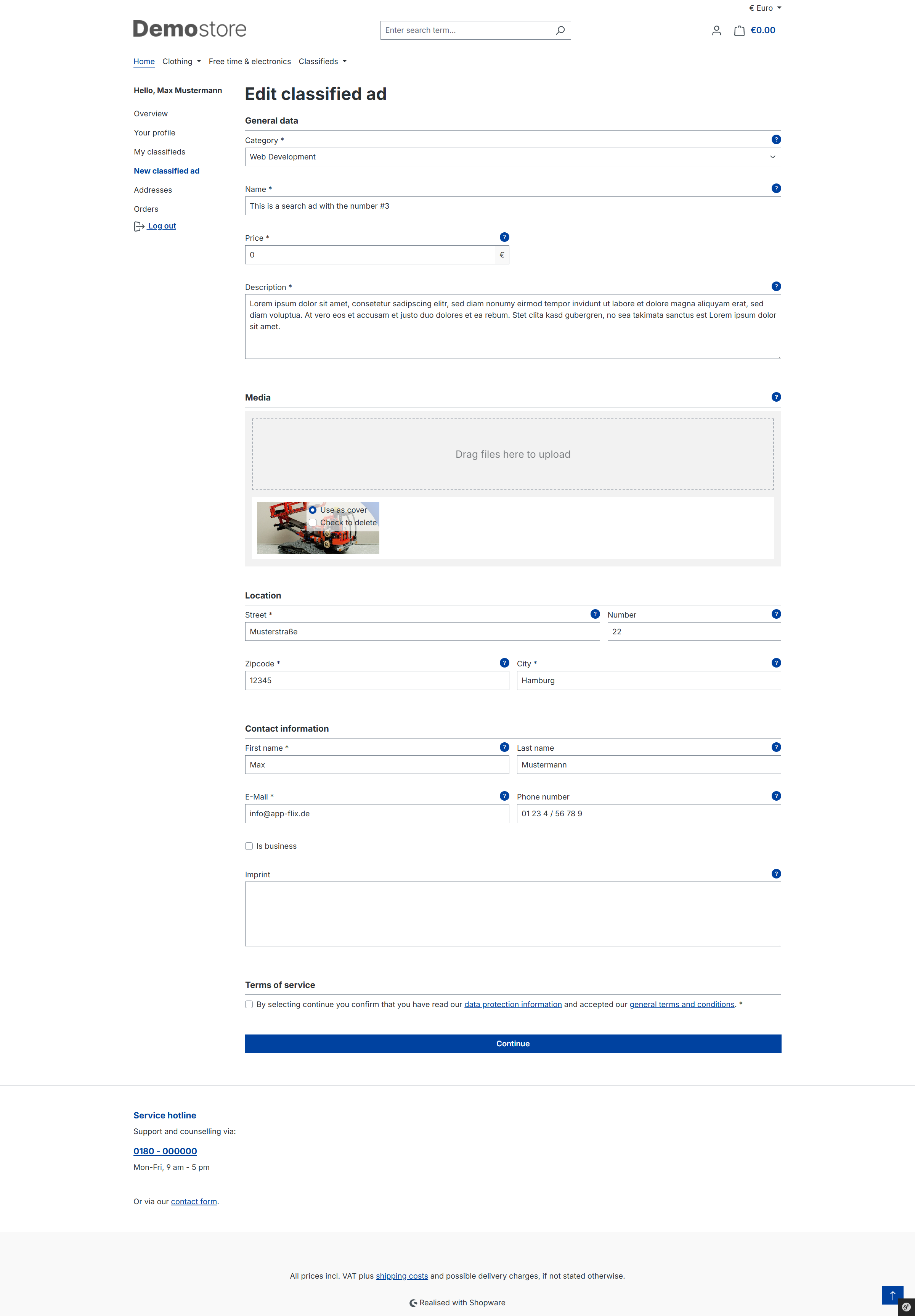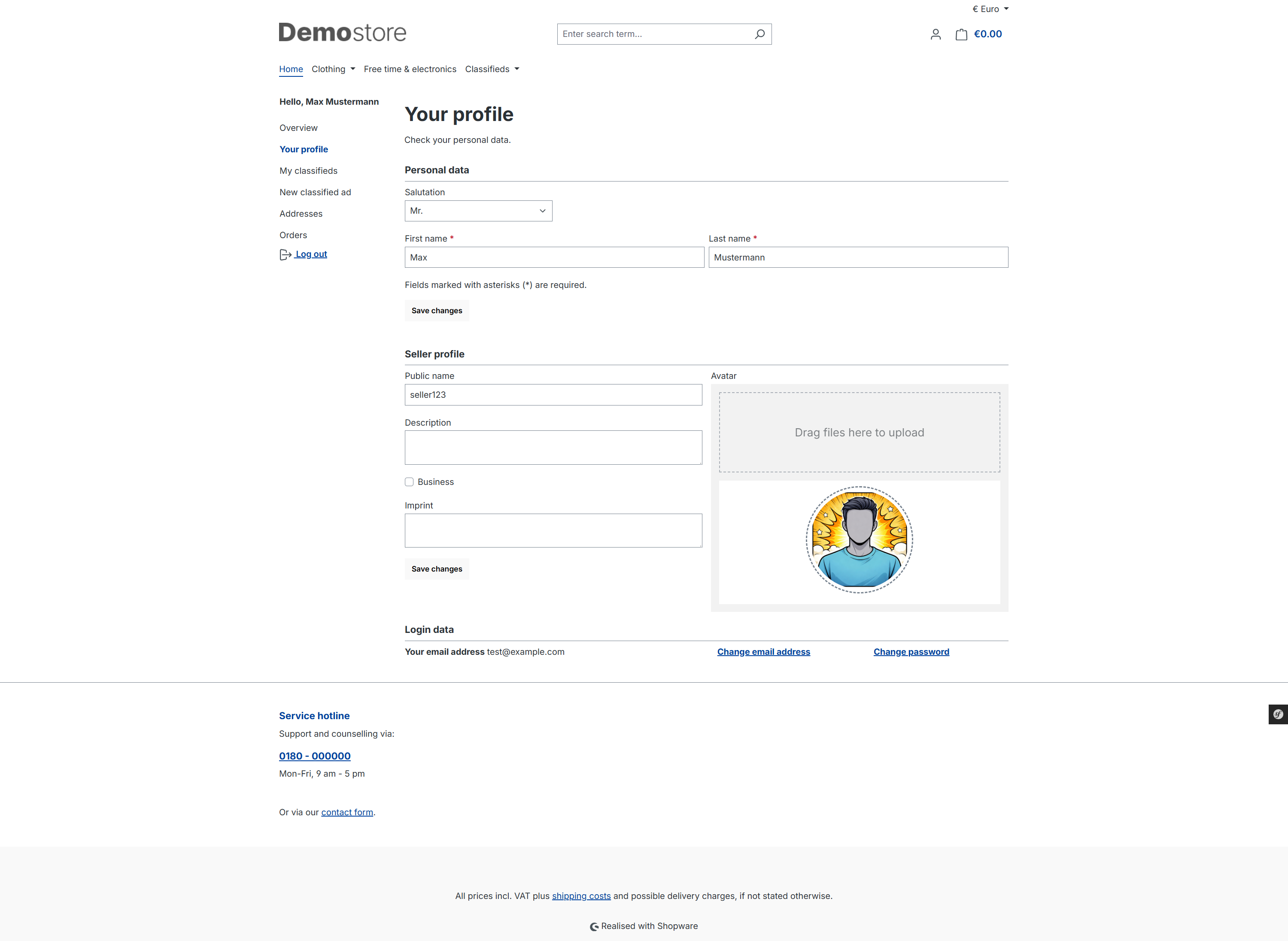 Der Kunde kann eigene Anzeigen erstellen. Dazu wird ein Verkäuferprofil angelegt.